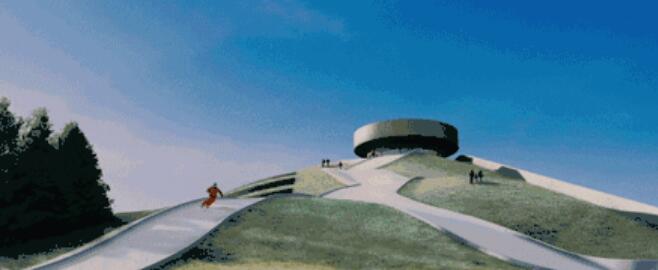 在滑雪道包圍的中心將建造一個百米高的煙囪,用于排放水汽。到了晚上,激光將被投射在煙圈上,造成炫目的視覺效果。