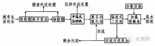 奧貝爾氧化溝工藝流程見(jiàn)下圖: