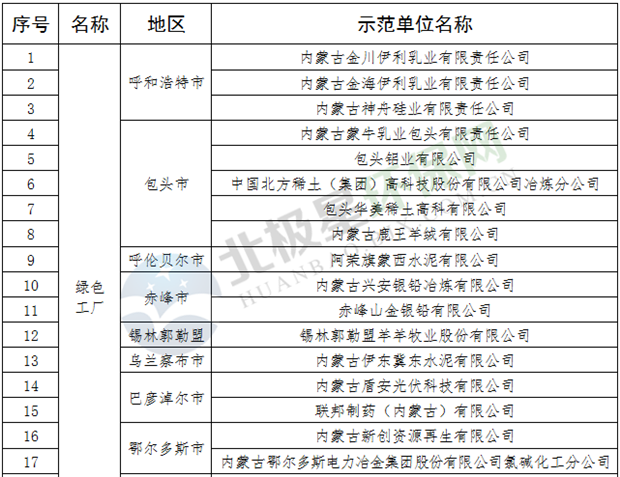 附件:內蒙古自治區(qū)第二批綠色制造示范名單