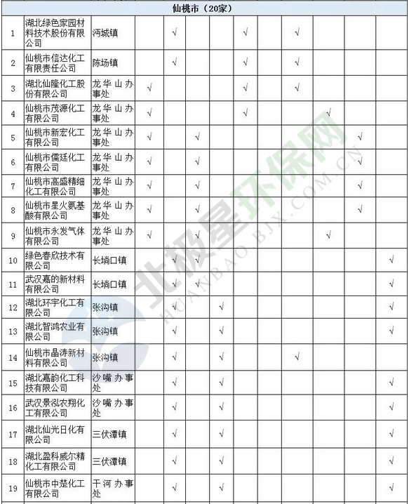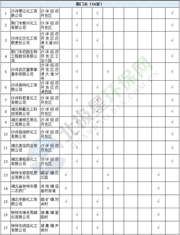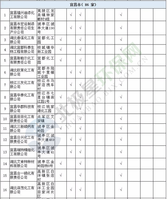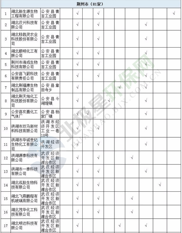 日前湖北省經(jīng)信委發(fā)布了關(guān)于《湖北省沿江化工企業(yè)關(guān)改搬轉(zhuǎn)任務(wù)清單(征求意見稿)》公示,其中涉及湖北省沿江化工企業(yè)總計(jì)497家。公示期為2018年9月30日至10月11日。其中,武漢市( 93家 )、襄陽(yáng)市( 21家 )、宜昌市( 86 家)、十堰市( 21家)、荊州市(81家)、黃石市(16家)、荊門市(56家)、鄂州市(14家)、孝感市(8家)、黃岡市(38家)、咸寧市(8家)、恩施州(4家)、仙桃市(20家)、天門市(9家)、潛江市(22家)。