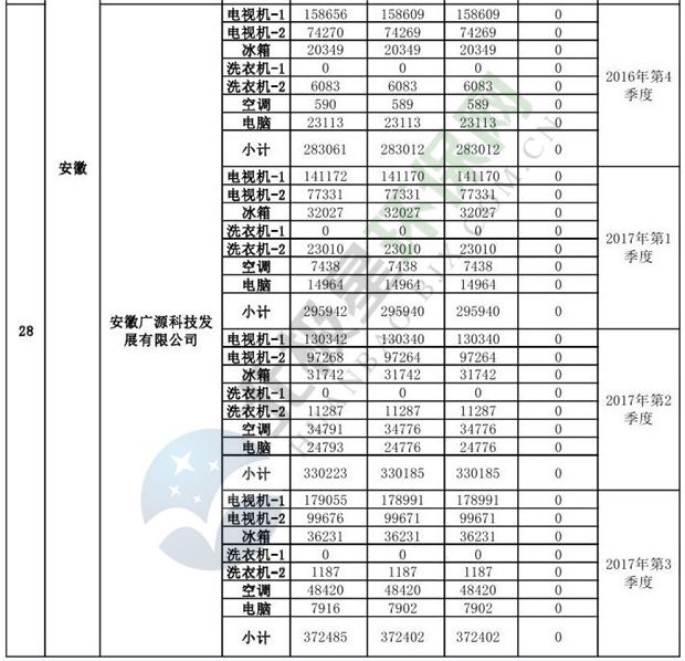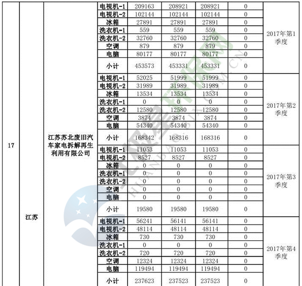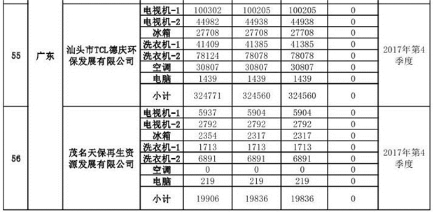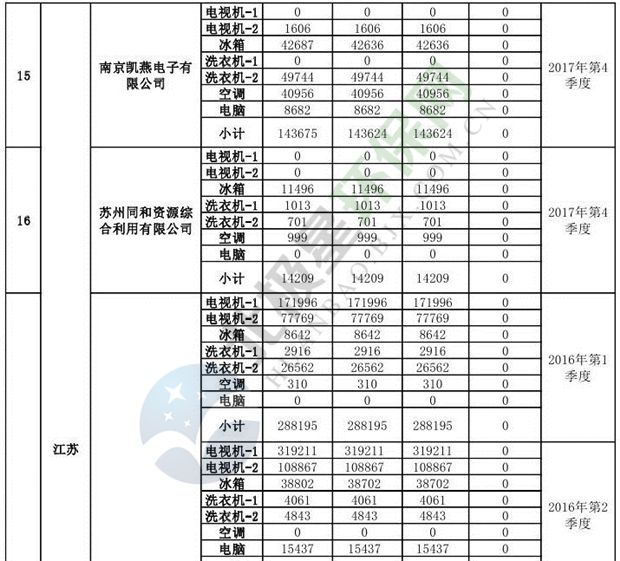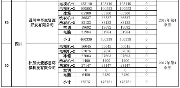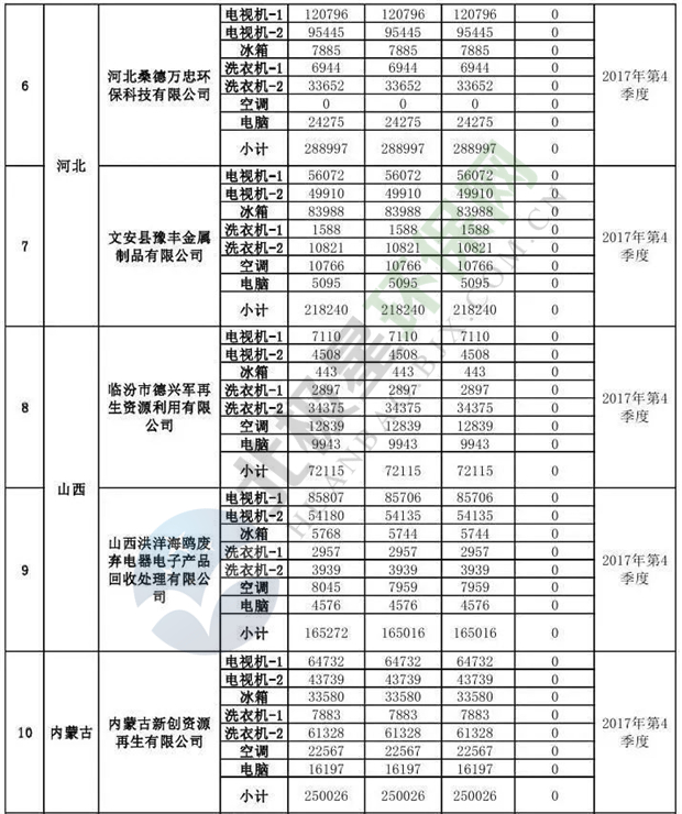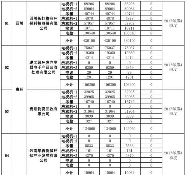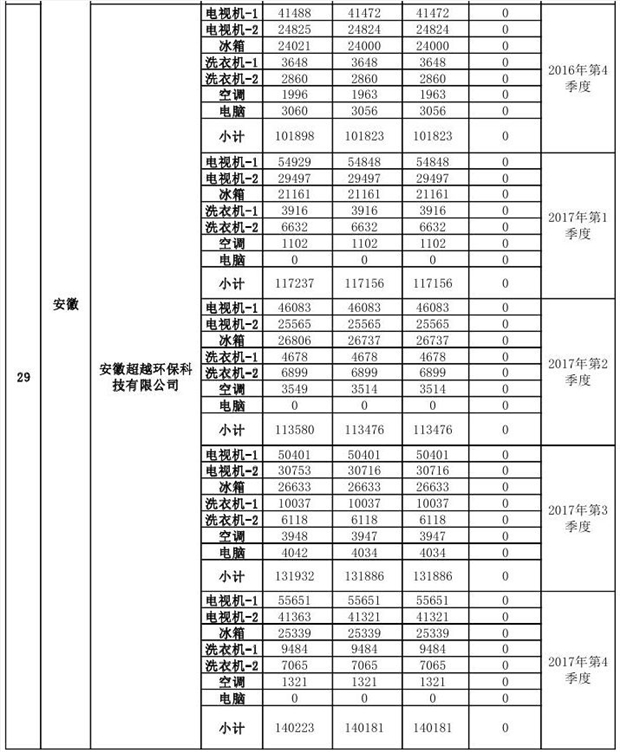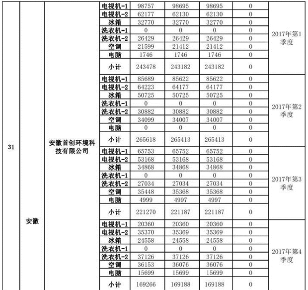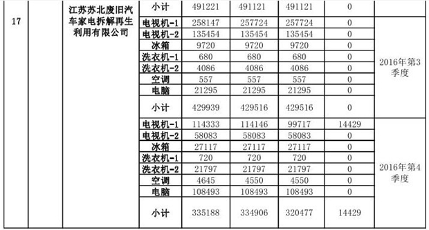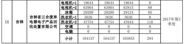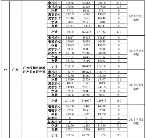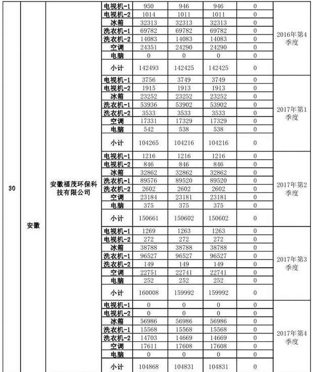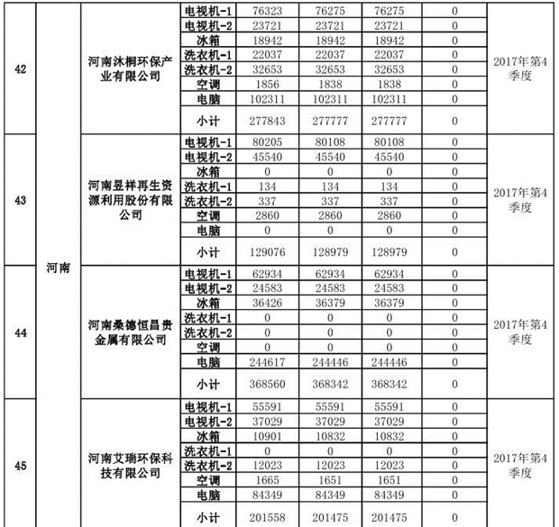 上述69家通過技術(shù)復(fù)核的企業(yè)申請廢電器規(guī)范拆解處理數(shù)量為26342953 臺(tái)(套);經(jīng)省級環(huán)保部門審核認(rèn)定廢電器規(guī)范拆解處理數(shù)量為26306765臺(tái)(套),扣減36188臺(tái)(套);部固管中心通過技術(shù)復(fù)核擬確認(rèn)廢電器規(guī)范拆解處理數(shù)量為26242476臺(tái)(套),扣減64289臺(tái)(套)(詳見附件)。