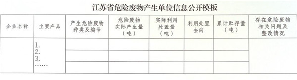 同樣按照江蘇省環(huán)保廳的要求,每個危險廢物產(chǎn)生單位和經(jīng)營單位都要通過現(xiàn)場公示、網(wǎng)站公布、報刊媒體等多種渠道主動公開危險廢物產(chǎn)生、處置、利用的情況,接受社會的監(jiān)督。