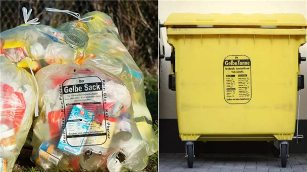 比如,黃桶(Gelbe Tonne)和黃袋(Gelber Sack)專門收集帶有綠點(diǎn)標(biāo)志(Der Grüne Punkt)的輕型包裝。 其中包括,例如:空飲料罐、塑料包裝或者利樂(lè)磚飲料包裝(Tetrapacks)等。另外,也可以把塑料瓶裝入專門發(fā)放的、或購(gòu)買的塑料袋子里,集中投放回收。這種黃袋可以到政府相關(guān)部門免費(fèi)領(lǐng)取或從超市購(gòu)買垃圾袋。