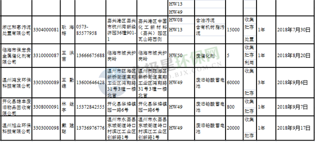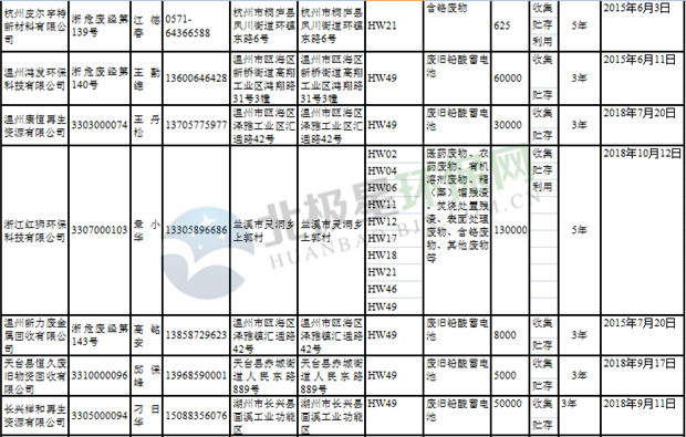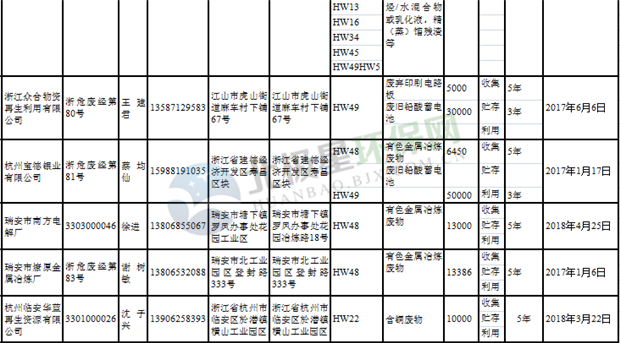 日前浙江省生態(tài)環(huán)境廳發(fā)布了《浙江省危險(xiǎn)廢物經(jīng)營(yíng)單位名單(2018年10月26日更新)》,涉及企業(yè)255家,并附有聯(lián)系電話。具體內(nèi)容如下: