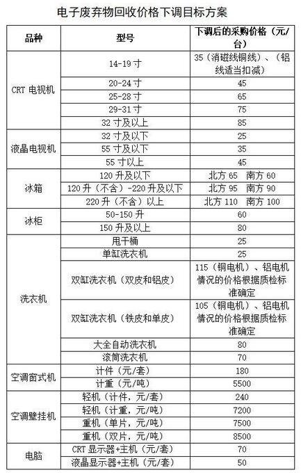 在行業(yè)企業(yè)先后幾輪對(duì)電子廢棄物收購(gòu)價(jià)格進(jìn)行調(diào)整過(guò)后,部分區(qū)域或部分品種的收購(gòu)價(jià)格仍虛高。隨著國(guó)家主管部委對(duì)補(bǔ)貼基金調(diào)整的意愿逐步明朗,企業(yè)承受的資金壓力將不斷增大。因此,下調(diào)電子廢棄物收購(gòu)價(jià)格勢(shì)在必行。本次討論中,幾家大型企業(yè)均愿率先垂范下調(diào)收購(gòu)價(jià)格,引導(dǎo)企業(yè)良性競(jìng)爭(zhēng)發(fā)展。本次價(jià)格下調(diào)目標(biāo)既是對(duì)解決基金缺口、打擊違法私拆和減少環(huán)境負(fù)外部性的主動(dòng)出擊,也是對(duì)未來(lái)基金政策調(diào)整的提前適應(yīng)。執(zhí)行方式上,考慮到全國(guó)范圍內(nèi)區(qū)域間市場(chǎng)狀況存在的差異,請(qǐng)中再資環(huán)、桑德、格力、TCL、華新綠源、格林美、長(zhǎng)虹等大型企業(yè)牽頭協(xié)調(diào)本區(qū)域內(nèi)拆解企業(yè),以目標(biāo)價(jià)格為導(dǎo)向、統(tǒng)一行動(dòng)分階段逐步下調(diào)電子廢棄物回收價(jià)格,并于今年12月底前最終達(dá)到目標(biāo)方案價(jià)格。