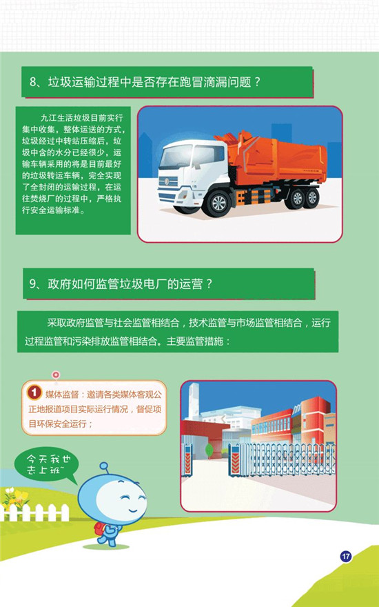 九江市將對該項目實行立體式監(jiān)管,采取政府監(jiān)管與社會監(jiān)管相結(jié)合,技術(shù)監(jiān)管與市場監(jiān)管相結(jié)合,運(yùn)行過程監(jiān)管和污染排放監(jiān)管相結(jié)合。媒體監(jiān)督方面,邀請各類媒體客觀公正地報道項目實際運(yùn)行情況,督促項目環(huán)保安全運(yùn)行。政府監(jiān)管方面,派專人駐廠監(jiān)管,實時查看廠內(nèi)運(yùn)行情況,行業(yè)管理部門定期不定期進(jìn)行現(xiàn)場巡查,廠內(nèi)所有運(yùn)行指標(biāo)與環(huán)保部門實行在線聯(lián)網(wǎng),所有數(shù)據(jù)實時監(jiān)控。企業(yè)將在廠門口安裝電子屏實時發(fā)布數(shù)據(jù),主動聘請具有相關(guān)檢測資質(zhì)的第三方檢測機(jī)構(gòu),對工廠的運(yùn)營進(jìn)行監(jiān)測監(jiān)管,實現(xiàn)專業(yè)監(jiān)管,獨立監(jiān)管。公眾也可以通過開放日、預(yù)約等形式進(jìn)行參觀監(jiān)督。