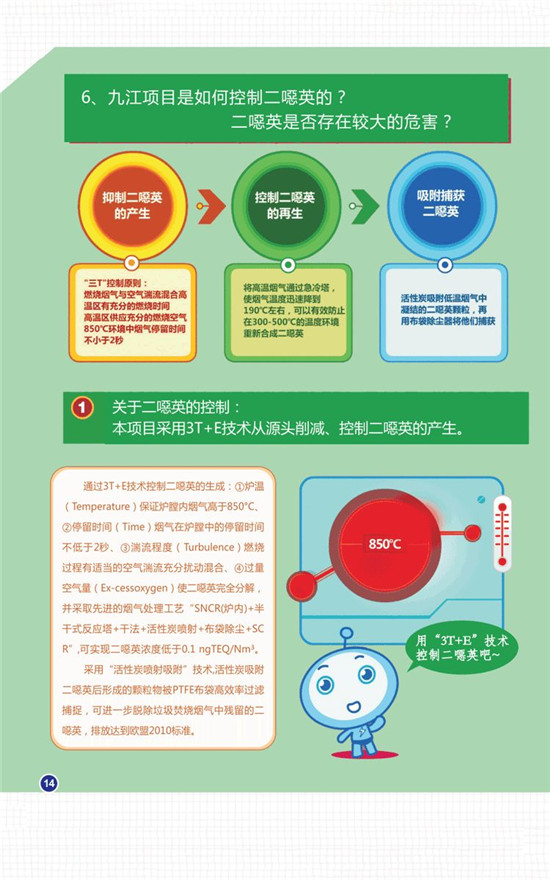 值得一提的是,九江垃圾焚燒發(fā)電項目采用3T+E技術(shù)從源頭削減、控制二噁英的產(chǎn)生。即保持垃圾焚燒溫度不低于850℃,煙氣在850C高溫區(qū)停留時間大于2秒,煙氣在爐膛內(nèi)充分?jǐn)_動混合,使垃圾焚燒產(chǎn)生的二噁英得以分解消失;同時,煙氣凈化系統(tǒng)中采用“活性炭噴射吸附”技術(shù);可有效吸附垃圾在爐膛內(nèi)焚燒時未完全分解的二噁英,排放標(biāo)準(zhǔn)完全達(dá)到或優(yōu)于0.1 ng TEQ/Nm³。通過上述環(huán)保措施處理后,二噁英的排放將達(dá)到歐盟2010標(biāo)準(zhǔn)(目前世界煙氣排放最高標(biāo)準(zhǔn))。