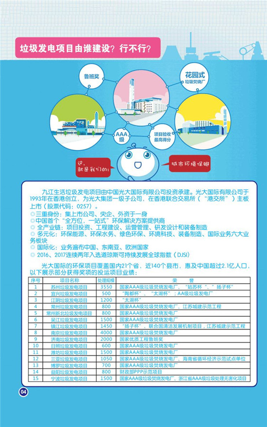 總投資額約人民幣12.7億元 光大國際取得江西九江垃圾發(fā)電項目