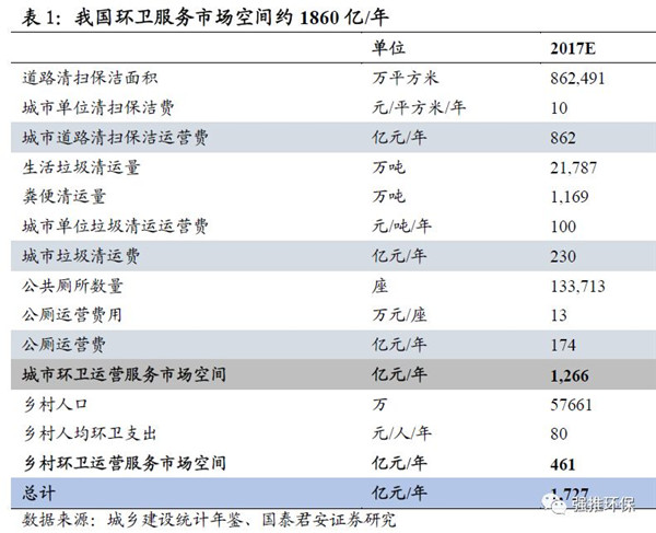 我們測算我國環(huán)衛(wèi)裝備市場空間231億/年,環(huán)衛(wèi)服務(wù)市場空間達(dá)1860億/年以上。