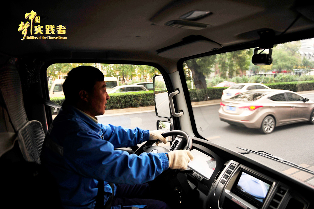 來北京之前,王金標(biāo)一直在老家當(dāng)貨車駕駛員。他說,同樣是開車,作為垃圾運(yùn)輸駕駛員可以清潔城市,服務(wù)市民,很有成就感。