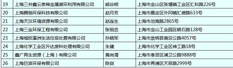 11月7日,上海環(huán)保局發(fā)布了《危險(xiǎn)廢物經(jīng)營(yíng)許可證名單》,共計(jì)26家企業(yè),詳情如下: