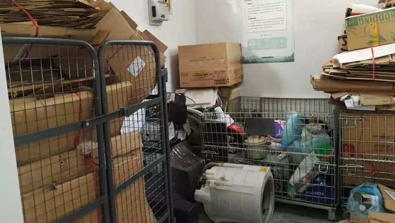 這個(gè)面積約40平方米的示范點(diǎn),室外設(shè)有干濕垃圾臨時(shí)放置點(diǎn),建筑垃圾、大件垃圾及綠化垃圾臨時(shí)堆放點(diǎn),以及可回收物臨時(shí)儲(chǔ)存點(diǎn);室內(nèi)還放置了多個(gè)置物架,以供擺放紙質(zhì)回收物和廢舊電器、衣物。