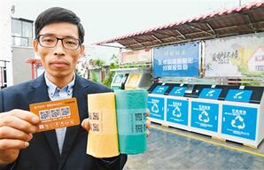 村民可將紙張、塑料、金屬、玻璃等可回收垃圾分類裝進(jìn)橘黃色二維碼垃圾袋,或打包貼上二維碼,掃描后投放至專用垃圾箱,機(jī)器自動稱重,核算出價格,等垃圾回收工作人員分揀確認(rèn)之后,按不同類別向村民返還積分,積分還可到指定地點兌換相應(yīng)的生活用品。何鵬說,有了這些激勵政策,每位村民對垃圾分類都非常認(rèn)真。