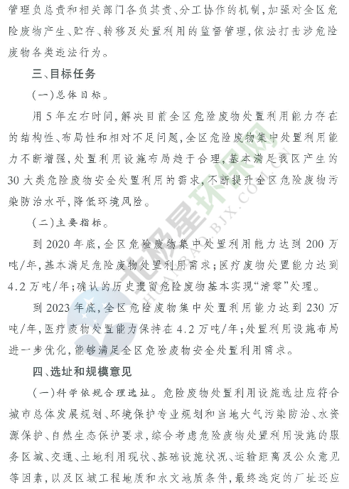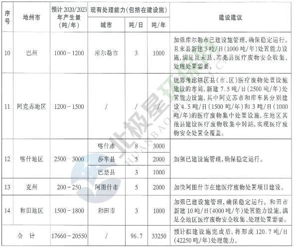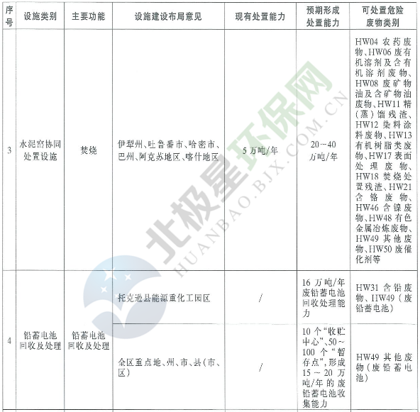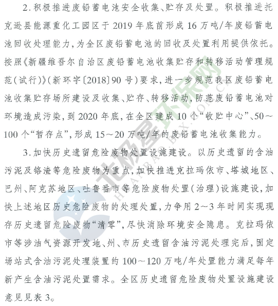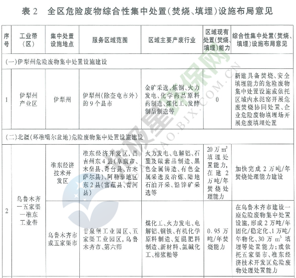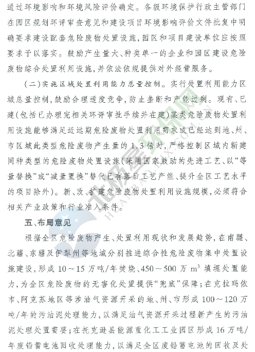新疆提出,到2020年底,全區(qū)危險廢物集中處置利用能力達到200萬噸/年,2023年底達到230萬噸/年。