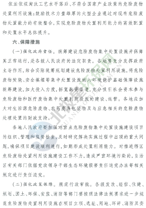 為指導和推進全區(qū)危險廢物處置利用設施布局和建設,提升危險廢物集中處置利用能力,促進危險廢物安全處置,防范危險廢物污染環(huán)境風險,新疆自治區(qū)人民政府辦公廳印發(fā)了《自治區(qū)危險廢物處置利用設施建設布局指導意見》。