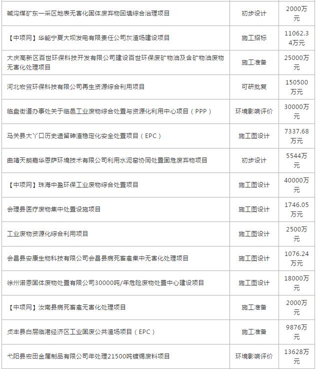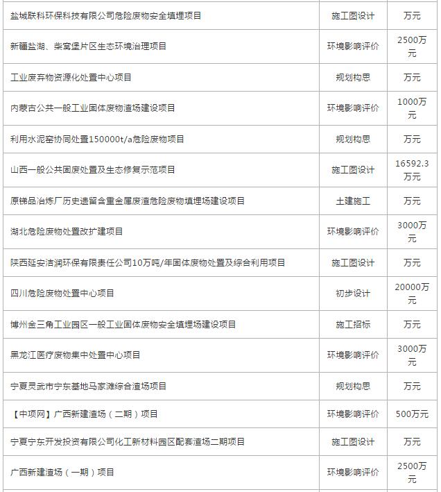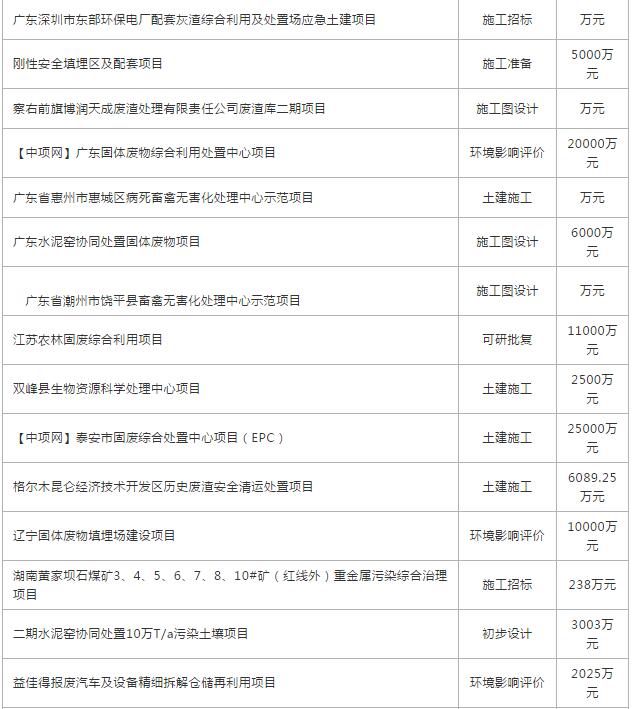 11月份全國擬在建固體廢棄物項(xiàng)目