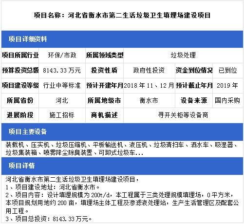 中項(xiàng)網(wǎng)獨(dú)家授權(quán)北極星固廢網(wǎng)發(fā)布最新垃圾處理項(xiàng)目(2018年11月20日更新),其中包括生活垃圾一體化PPP項(xiàng)目、垃圾填埋場(chǎng)項(xiàng)目、垃圾焚燒發(fā)電項(xiàng)目等。具體內(nèi)容如下: