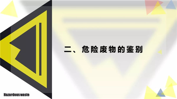 其次對于屬性不確定的固體廢物,則根據(jù)《固體廢物鑒別導(dǎo)則》(2006年3月,原國家環(huán)??偩值任宀课娴?1號)以及《危險廢物鑒別標準-通則》(GB5085-2007)、《急性毒性初篩》、《浸出毒性鑒別》、《腐蝕性鑒別》、《反應(yīng)性鑒別》、《易燃性鑒別》、《危險廢物鑒別技術(shù)規(guī)范》(HJ/T298-2007)等國家已出臺的危險廢物鑒別標準和方法,進行屬性鑒別。