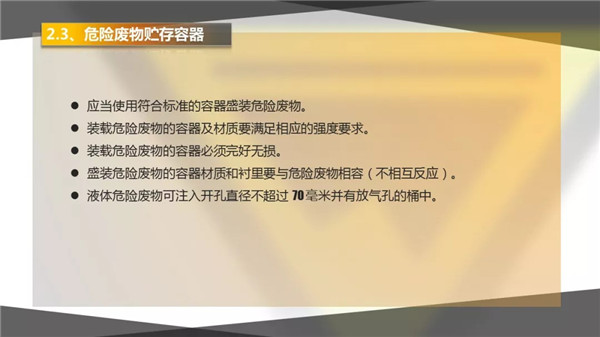 5) 企業(yè)需要有符合規(guī)定的標簽和標識,不得擅自傾倒、堆放危險廢物;