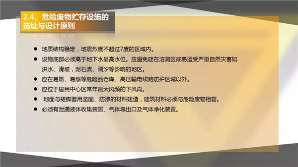 3)危險廢物暫存場所選址要合理,并且需有防腐、防滲、防漏措施,及廢氣、廢水收集設(shè)施;