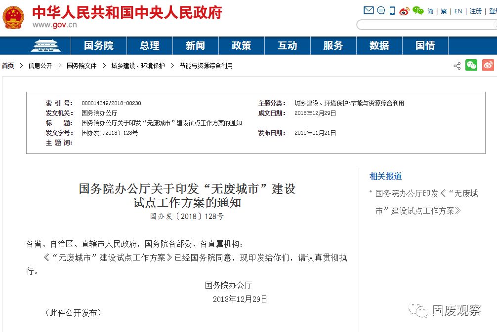 “無廢城市”是建設(shè)美麗中國的細(xì)胞工程,黨中央、國務(wù)院高度重視“無廢城市”建設(shè)。2018年12月,中央全面深化改革委員會審議通過了《“無廢城市”建設(shè)試點工作方案》(以下簡稱《方案》),近日由國辦印發(fā)。這是黨中央、國務(wù)院在打好污染防治攻堅戰(zhàn)、決勝全面建成小康社會關(guān)鍵階段作出的重大改革部署,是深入落實習(xí)近...