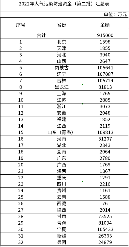 財(cái)政部關(guān)于下達(dá)2022年度大氣污染防治資金預(yù)算(第二批)的通知 財(cái)資環(huán)〔2022〕58號(hào) 有關(guān)省、自治區(qū)、直轄市、計(jì)劃單列市財(cái)政廳(局),新疆生產(chǎn)建設(shè)兵團(tuán)財(cái)政局: 為支持大氣污染防治工作,促進(jìn)大氣質(zhì)量改善,現(xiàn)下達(dá)你省(自治區(qū)、直轄市、新疆生產(chǎn)建設(shè)兵團(tuán),以下簡(jiǎn)稱(chēng)省)2022年大氣污染防治資金,用于支持...