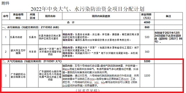 韶關(guān)市生態(tài)環(huán)境局關(guān)于2022年中央大氣、水污染防治資金項(xiàng)目分配計(jì)劃的公示 按照《廣東省省級(jí)財(cái)政專(zhuān)項(xiàng)資金管理辦法(試行)》(粵府〔2018〕120號(hào))和《廣東省省級(jí)生態(tài)環(huán)境專(zhuān)項(xiàng)資金管理細(xì)則》(粵環(huán)函〔2019〕1135號(hào))等要求,現(xiàn)將2022年中央大氣、水污染防治資金項(xiàng)目分配計(jì)劃予以公示。 如有異議,...