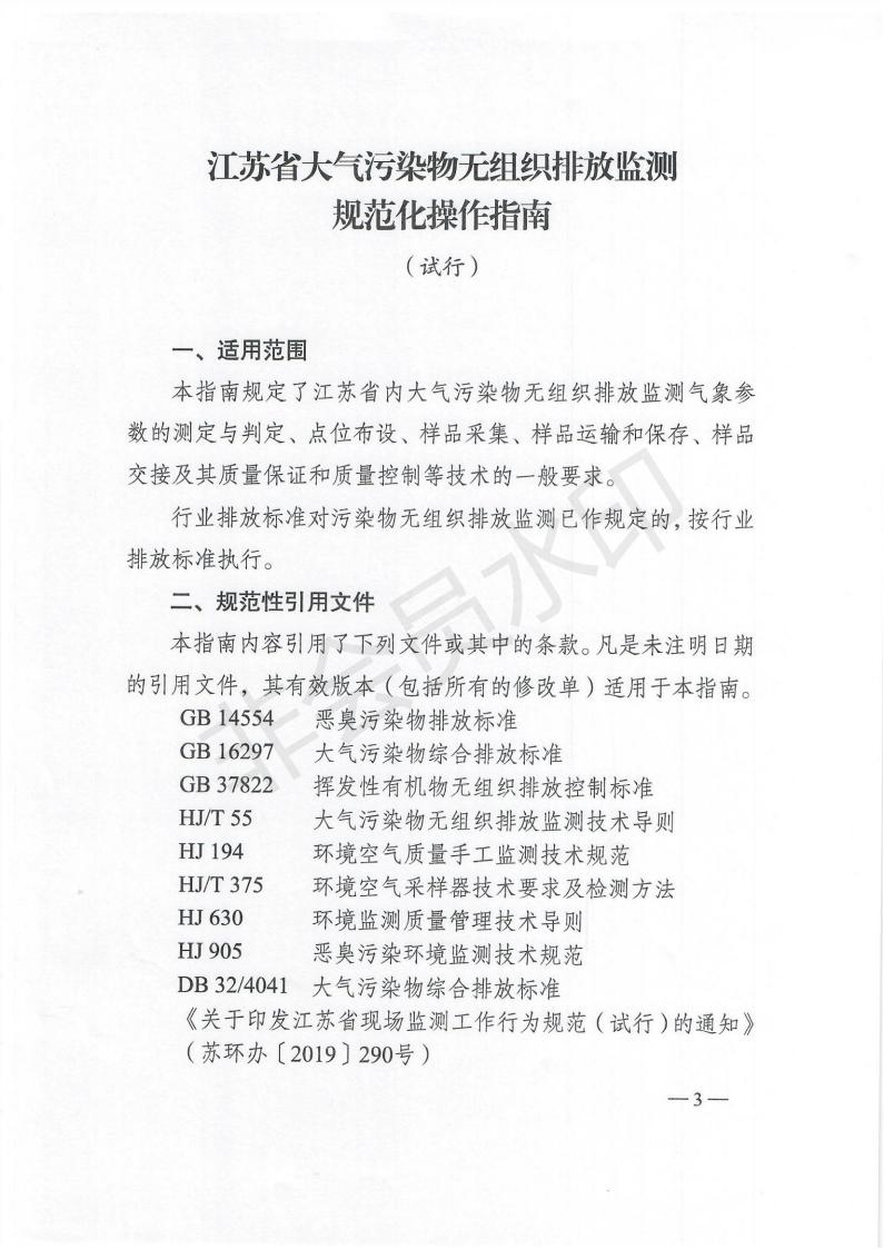 為規(guī)范指導(dǎo)江蘇省生態(tài)環(huán)境監(jiān)測(cè)機(jī)構(gòu)開(kāi)展大氣污染物無(wú)組織排放監(jiān)測(cè),強(qiáng)化污染溯源監(jiān)測(cè)、監(jiān)督執(zhí)法監(jiān)測(cè)的科學(xué)性、有效性和規(guī)范性,提升“科學(xué)治污、精準(zhǔn)治污”能力,更好支撐大氣污染防治工作,近日,江蘇省生態(tài)環(huán)境廳印發(fā)了《江蘇省大氣污染物無(wú)組織排放監(jiān)測(cè)規(guī)范化操作指南(試行)》。 全文如下: ...
