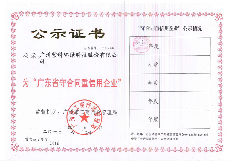 近日,順利通過省工商行政管理局評審,獲得2016年度廣東省“守合同重信用企業(yè)”,此舉肯定了紫科環(huán)保誠信守約經(jīng)營、信用文化建設(shè)與良好的客戶口碑?!皬V東省守合同重信用企業(yè)”獲評企業(yè),均為有實力的誠信標(biāo)桿企業(yè)。它是由廣東省工商行政管理局評定頒發(fā)的,用于鼓勵企業(yè)加強(qiáng)合同和信用管理,促進(jìn)當(dāng)?shù)仄髽I(yè)信用體系建設(shè)。...