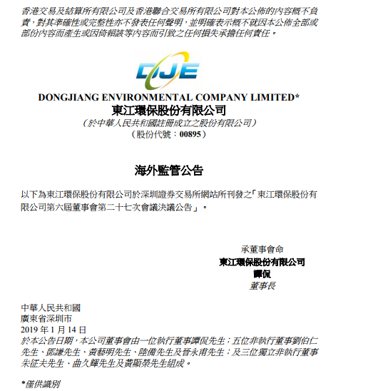 1月23日,東江環(huán)保公布,公司2018年12月收到揭陽大南海石化工業(yè)區(qū)國業(yè)投資開發(fā)有限公司(以下簡稱“國業(yè)公司”)發(fā)來的《中標(biāo)通知書》,確認(rèn)公司中標(biāo)揭陽大南海石化工業(yè)區(qū)危險廢物處理項目(以下簡稱“揭陽大南海危廢項目”)。2019年1月23日,公司第六屆董事會第二十八次會議審議通過了《關(guān)于簽訂合作協(xié)議...